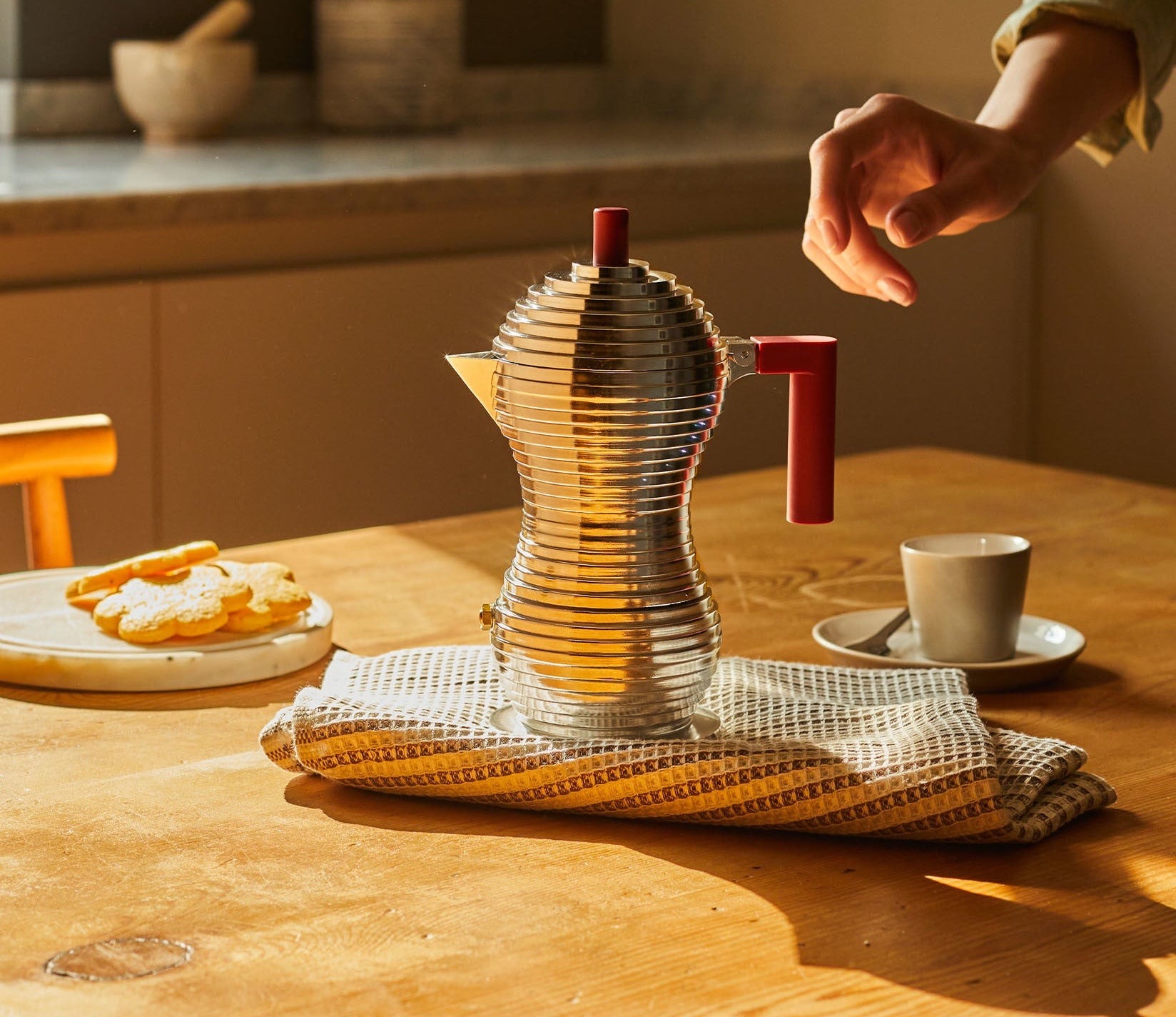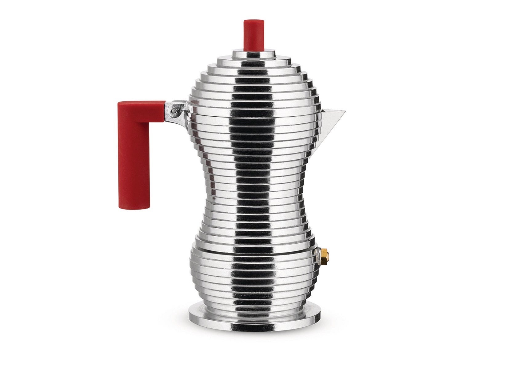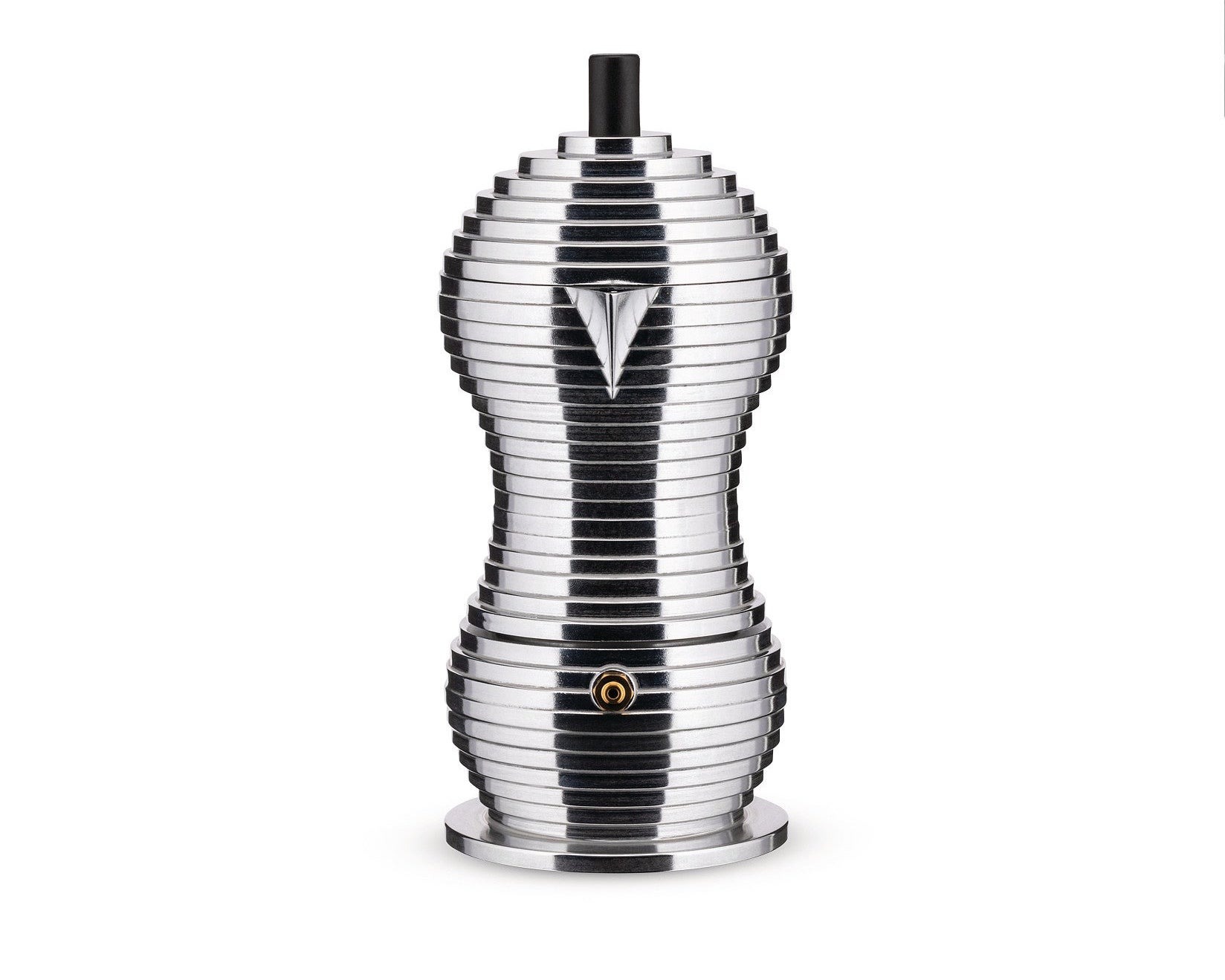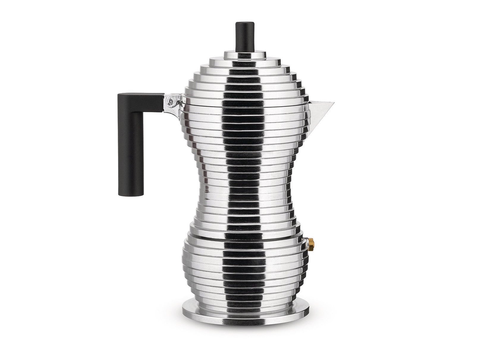 TOP ALESSIDiseñada por Michele De Lucchi, Pulcina es una cafetera espresso que combina la tradición italiana con innovación técnica. Su forma escalonada optimiza la preparación del café, interrumpiendo la erogación en el momento justo para evitar sabores amargos. Fabricada en aluminio fundido, su silueta escultural y su pico en forma de “V” la convierten en una pieza funcional y de fuerte carácter visual.