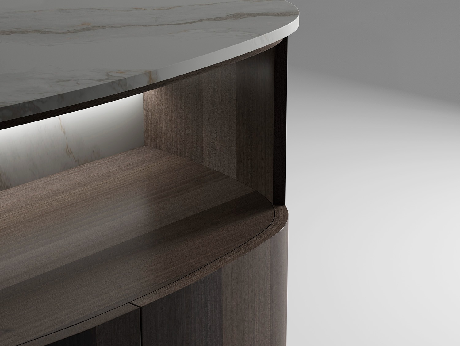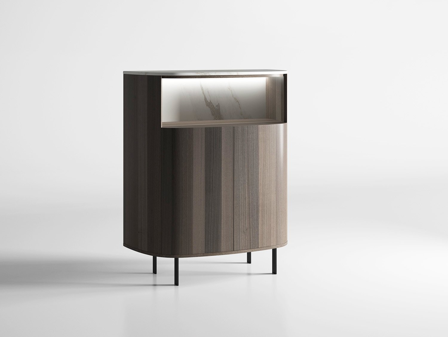 Almacenamiento DocaEsta pieza destaca por sus formas envolventes gracias a los laterales redondeados, que suavizan el conjunto y aportan un aire contemporáneo. La hornacina interior introduce un espacio funcional y decorativo, ideal para exponer o almacenar objetos con estilo. Un diseño equilibrado que combina calidez, funcionalidad y elegancia en una única solución.