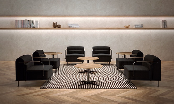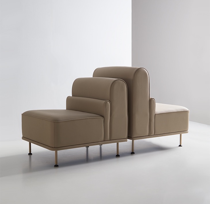 Alpe toma inspiración en las formas suaves y redondeadas de las montañas. Sus butacas de una plaza, con dos alturas de respaldo y opción con o sin brazos, permiten múltiples configuraciones gracias a su diseño modular.