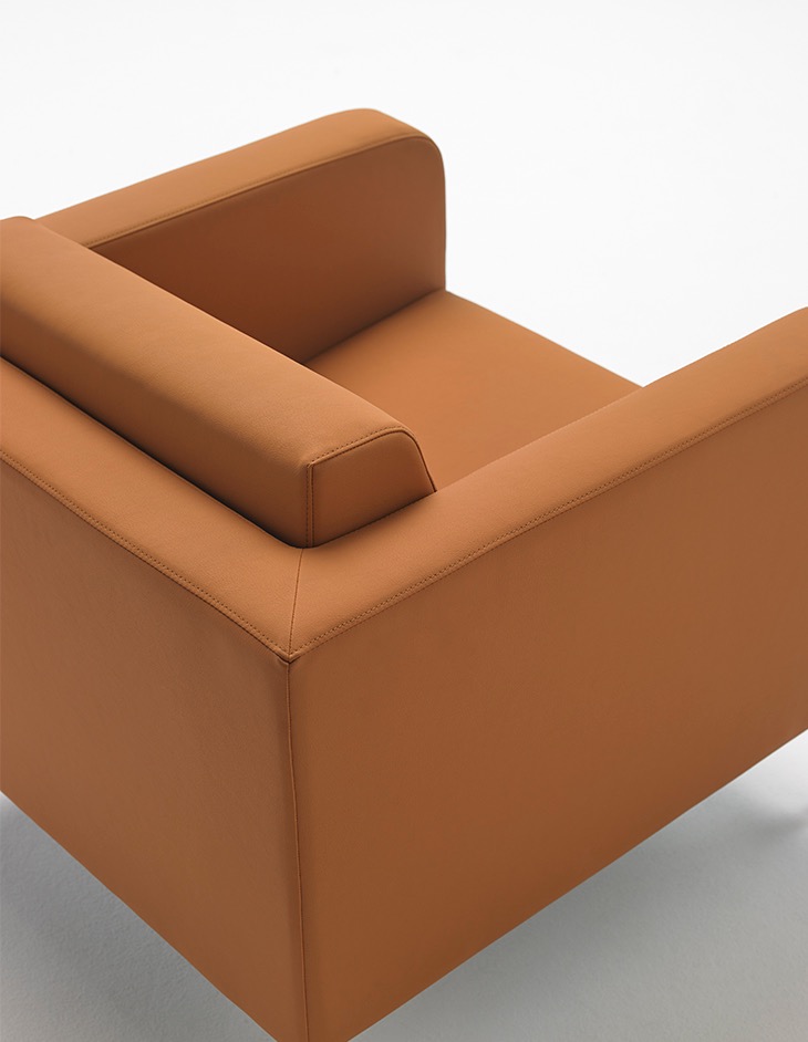 La limpieza de líneas y la simplicidad de las formas otorgan un carácter único al conjunto. El sofá, elegante y atemporal, ofrece comodidad, adaptándose a las nuevas dinámicas de trabajo en oficina, zonas de descanso y áreas de recepción