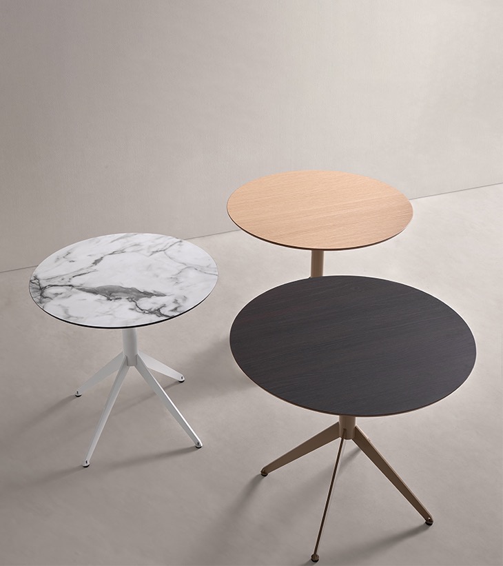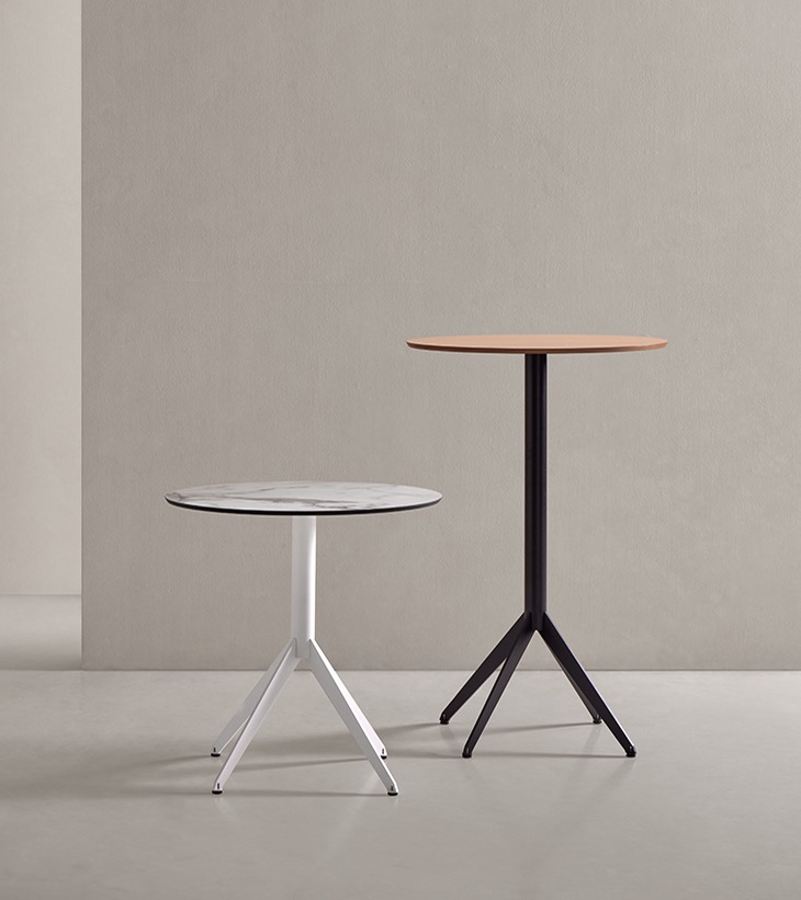 Mesas versátiles y funcionales, ideales para entornos hospitality, oficinas, restaurantes o domésticos. Con dos alturas de pie y opción de tapa abatible, esta colección combina diseño, versatilidad y eficiencia en el uso del espacio.