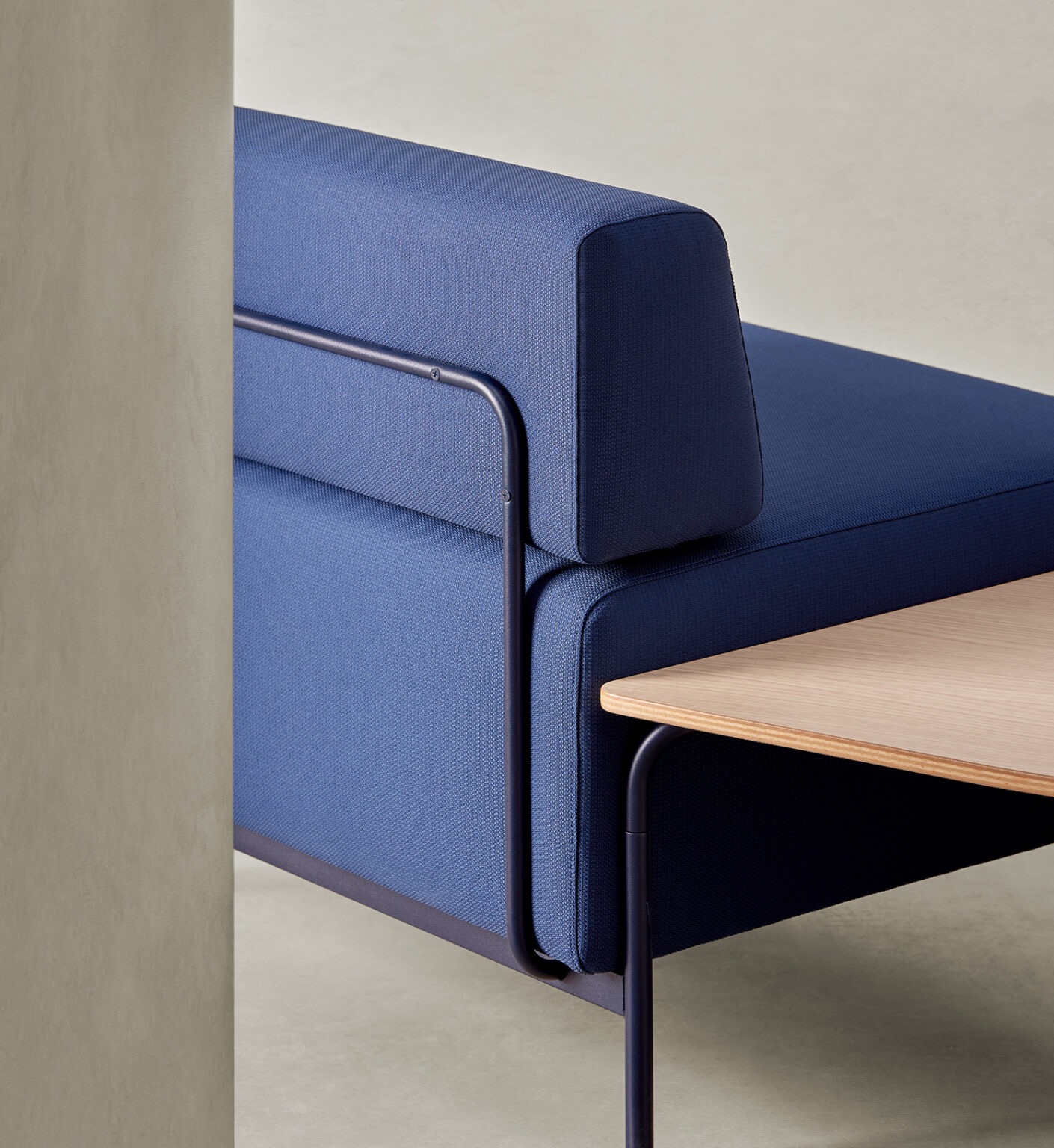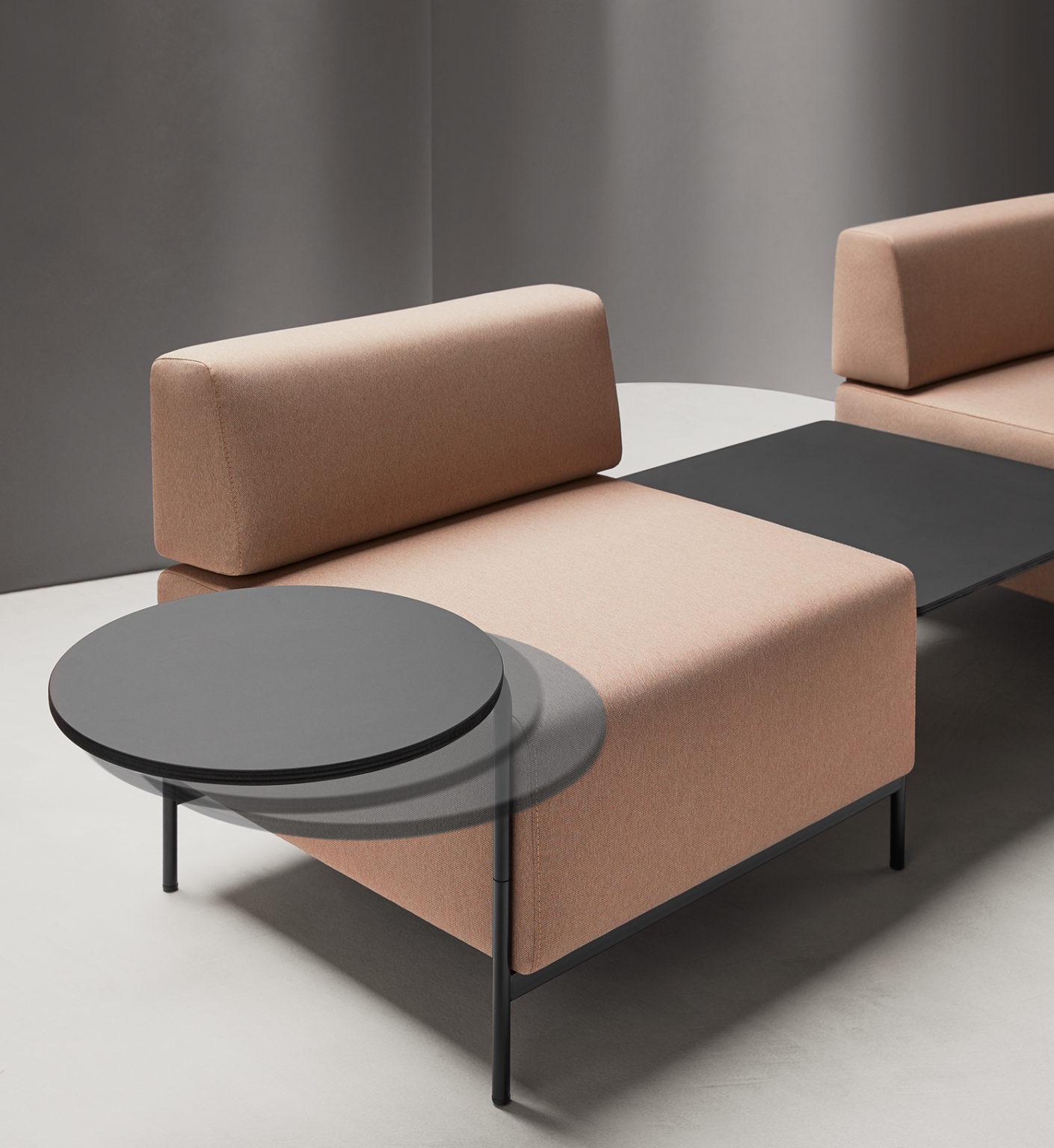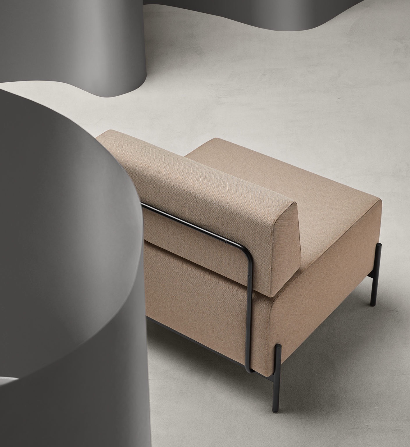 Gabriel Teixidó firma este sistema de butacas modulares de líneas simples, pensadas para conectarse entre sí y formar composiciones lineales o curvas que se adaptan a espacios de estar, espera o recepción.