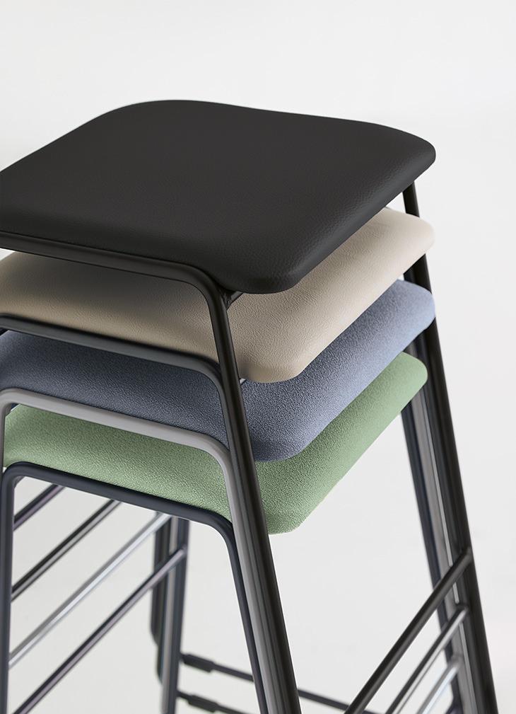 Hug, diseñada por Ximo Roca, es una colección que combina la unión de formas y un enfoque funcional del diseño. Sus sillas y ligeros taburetes nacen con tapizado y evolucionan con versiones en madera estratificada, ampliando las posibilidades estéticas y de uso.